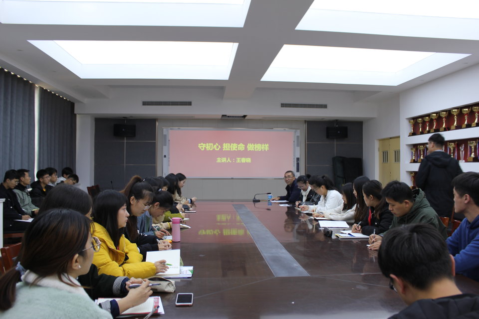 11月9日,kaiyun登录中国入口登录kaiyun登录中国入口登录党委副书记王春晓以《守初心、担使命、做榜样》为题,向全体学生党员及第25期入党积极分子讲“不忘初心、牢记使命”主题教育专题党课。