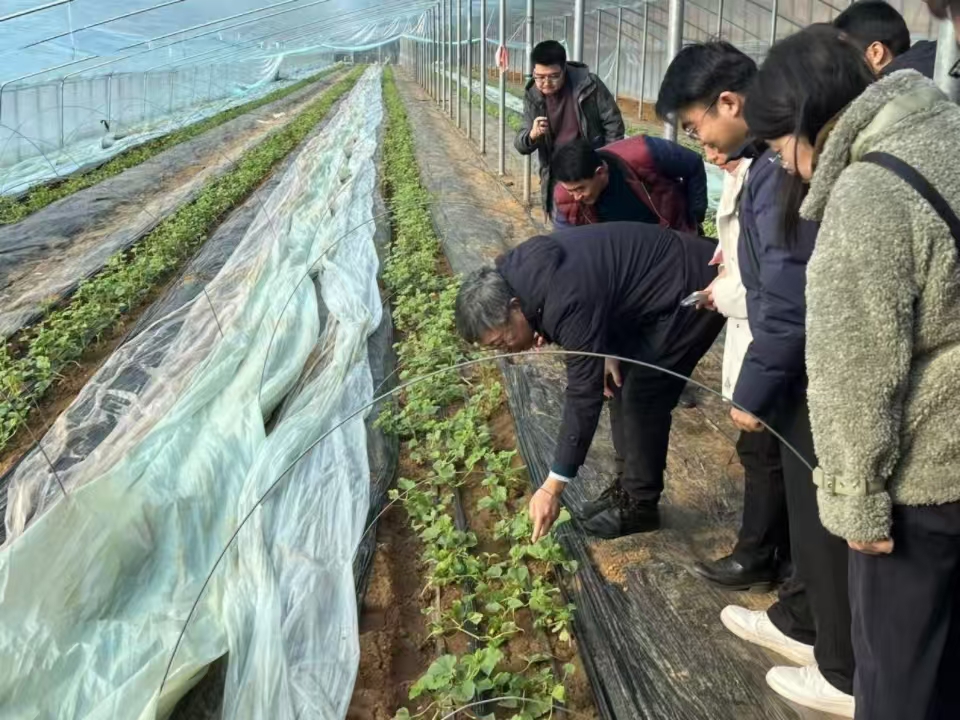 上午,学院党委委员、副院长程斐;学院党委委员、第二党支部书记史宇亮等一行人来到莱西市马连庄镇鲁岚新村,与当地种植户围绕甜瓜栽培与育种技术等内容开展交流座谈。随后,党员教师们深入鲁岚新村甜瓜种植大棚开展农业科技服务,在当地村委会负责人的陪同下,详细了解了当地甜瓜种植规模、产量、销售和种植环境等情况,根据种植户提出的问题,结合实地情况,重点对甜瓜灌溉、病虫害防控与科学施肥等方面给出了科学建议和具体指导,并对当地甜瓜种植存在的实际问题给出了整改意见。最后,程斐一行人走访看望了鲁岚新村老党员、家庭生活困难群众。 .jpg)