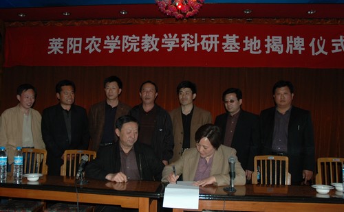 5月7日,我校在山东登海种业股份有限公司西由种子分公司建设学院教学科研基地举行揭牌仪式,我院院长王然与西由种子分公司总经理王均邦分别在建设教学科研基地的协议书上签字,并共同为基地揭牌。莱州市科技局、农业局、农科院等单位负责人出席了揭牌仪式。