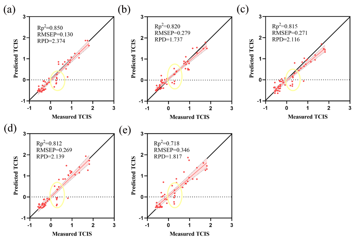 图5 TCIS的预测散点图