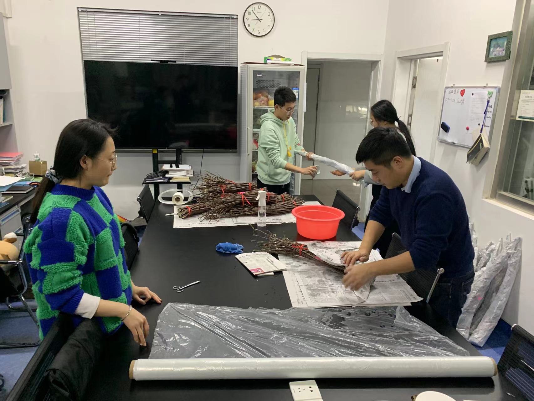 4.2 莱西疫情解封后,张玉刚教授和李保华教授及姜生辉博士,来到莱西良种场,进行果园指导,并送来了苗木进行早期病虫害预防的药剂配方,对果树苗木起苗后如何分级、打药、包装、库存、运输等细节进行了指导。为新建果园的优质苗木以及成活率提供技术支撑。
