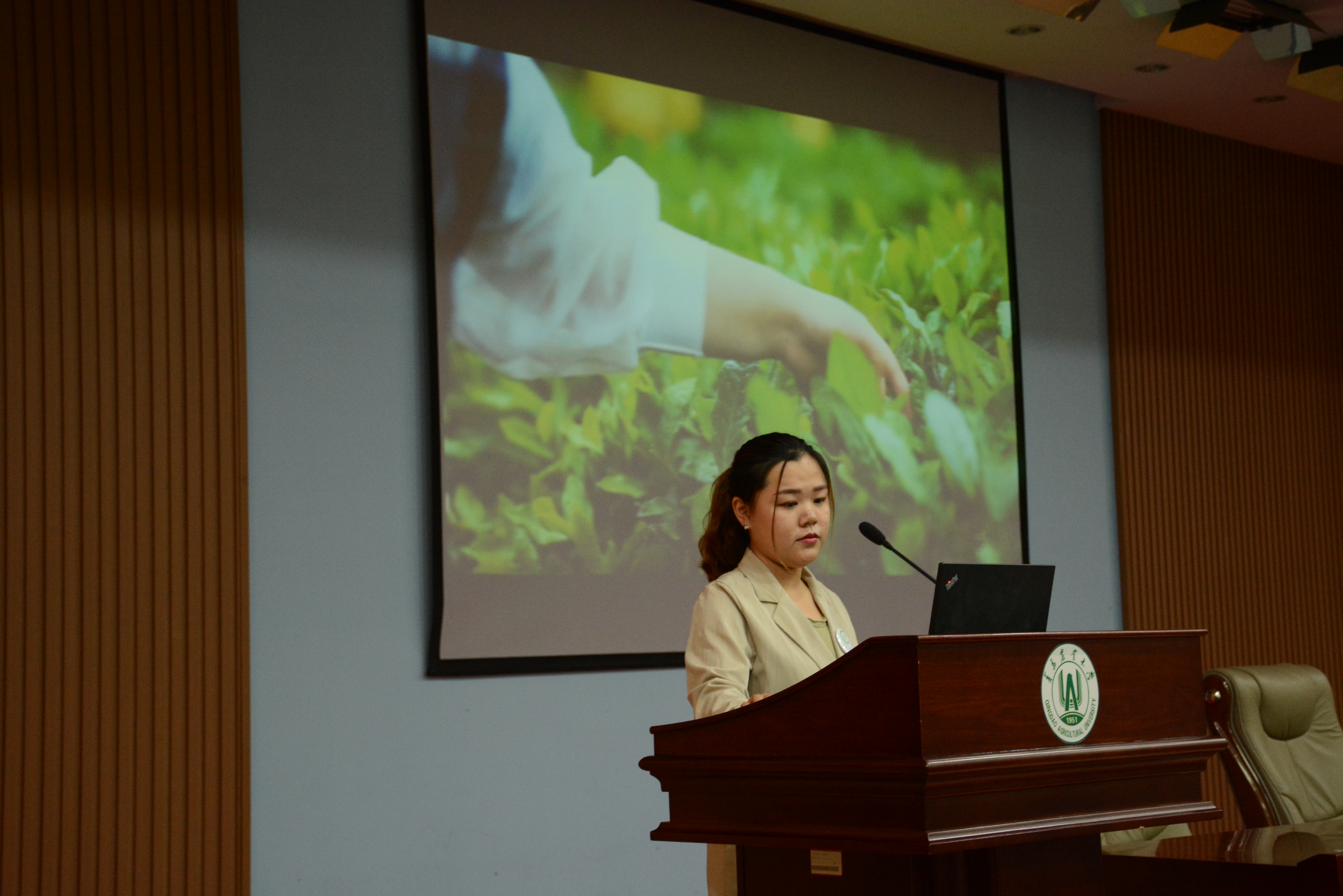 分享会中,实践团七位优秀代表分别从前期准备、实践过程、实践成果和实践感悟四个方面向同学们展示出社会实践的独特魅力。分享过程中,“访非遗,逐国梦”实践队队长朱广雪以照片、视频的形式,向同学们分享了学习草编、制做烧饼、走访面塑等实践过程中的点点滴滴,并在最后提出了“学古之道,有食笋而去其箨也”的主题,使实践内容鲜明且具特色,也让同学们进一步了解了非物质文化遗产深厚的底蕴。此外,以学院茶学专业为实践特色的“茶之行,爱之旅”社会实践队,在视觉与听觉的享受中向同学们讲述了他们与茶叶的故事,让同学们在感受社会实践意义的同时,也让他们接触到不一样的社会实践。