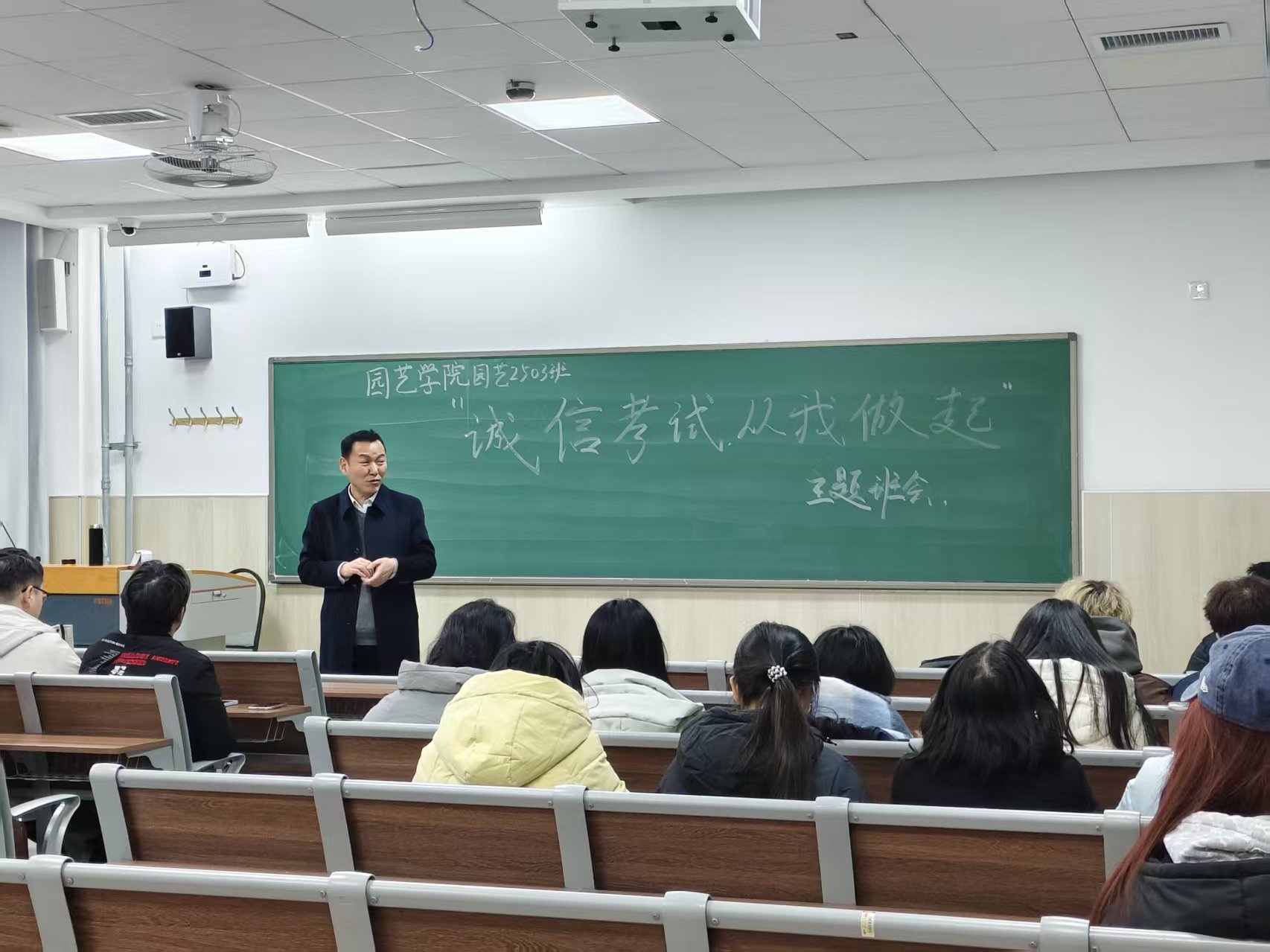 12月30日,学院在平度校区教学楼召开2025级全体学生考风考纪主题教育大会,2025级辅导员刘园主讲。会上,刘园围绕考场规则、违纪作弊类型、历年违纪情况等七个方面,结合学校近年考试违纪作弊典型案例,系统阐释诚信应考的重要意义。各班班主任聚焦“诚信应考”主题召开专题班会,带领学生集体学习《kaiyun登录中国入口登录学生考试违纪及作弊行为的处理规定》《学生手册》中关于考试纪律的具体条款,观看诚信考试主题教育宣传片,深化教育成效。此外,学院面向2025级学生发起“清朗考场”志愿服务活动,组织学生对教学楼内考场进行全面清扫整理,确保考场以“零痕迹”状态迎接考试。志愿者表示,能为营造公平公正的考试环境贡献力量,感到十分有意义,这既是对诚信考试理念的践行,也是新时代大学生责任感的体现。
