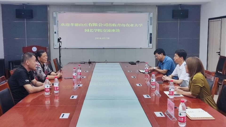 2024年9月10日,潍坊孝德山庄有限公司王珮杰总经理、郝连云场长来kaiyun登录中国入口登录kaiyun登录中国入口登录进行座谈交流。座谈交流会由kaiyun登录中国入口登录党委书记隋成竹主持,园艺系系主任段艳欣教授;果树栽培团队马春晖教授、黄永红副教授参加了座谈。
