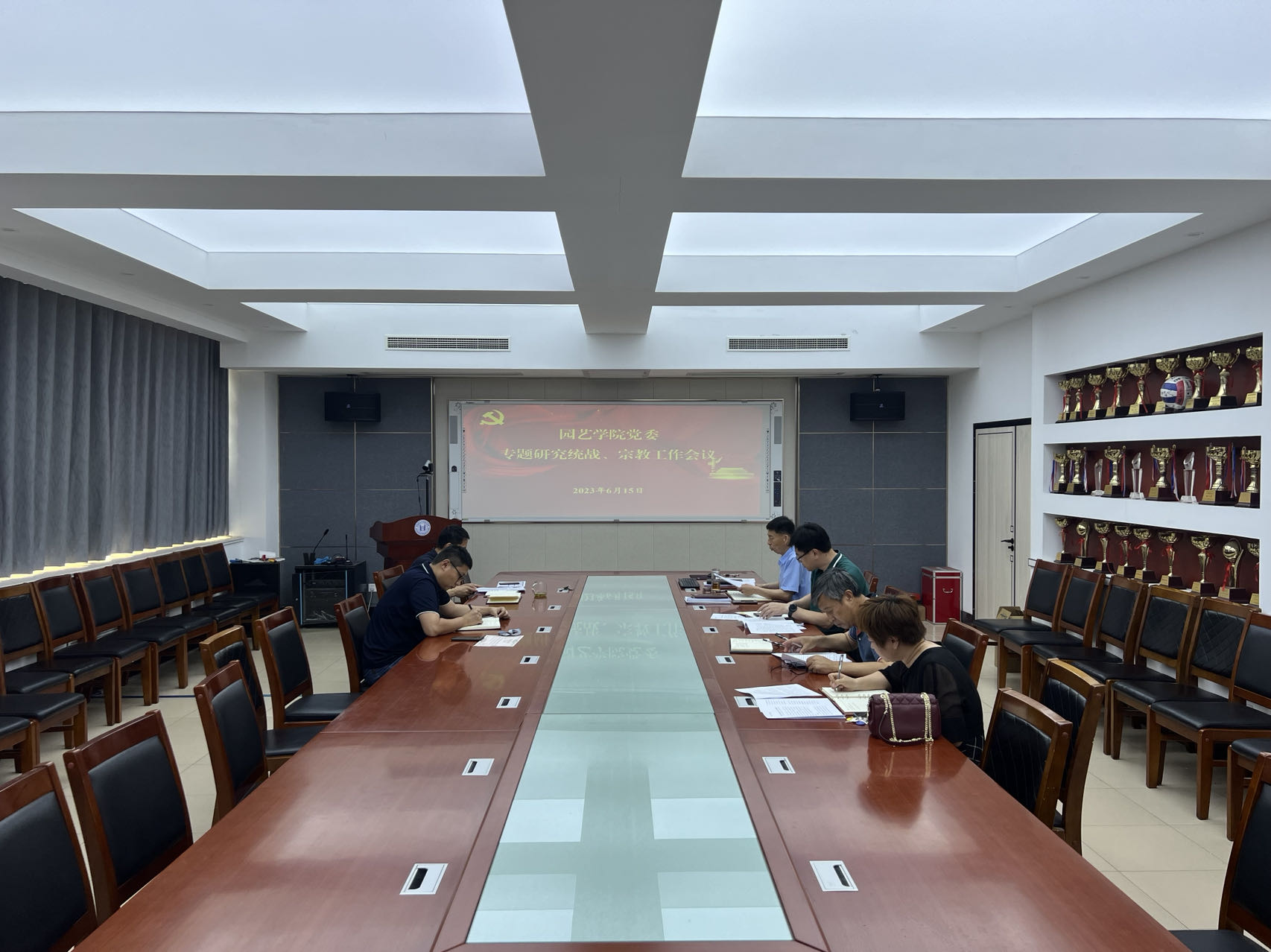 会议回顾了2023年上半年学院统一战线和统战工作基本情况,梳理讨论了近期统战工作与宗教工作的主要任务。隋成竹对近期统战工作提出四点要求。一要认真做好民主党派、无党派人士工作,班子成员要积极与党外人士交朋友,每学期定期与党外人士谈心谈话;二要认真做好抵御宗教渗透和防范校园传教工作,把握重要节点,关注重点人群,加强阵地建设与管理;三要做好放假前统一战线及意识形态工作领域风险排查,及时关注信师生思想动态;四要积极听取党外人士民主意见建议,不断促进学院民主管理、科学管理。