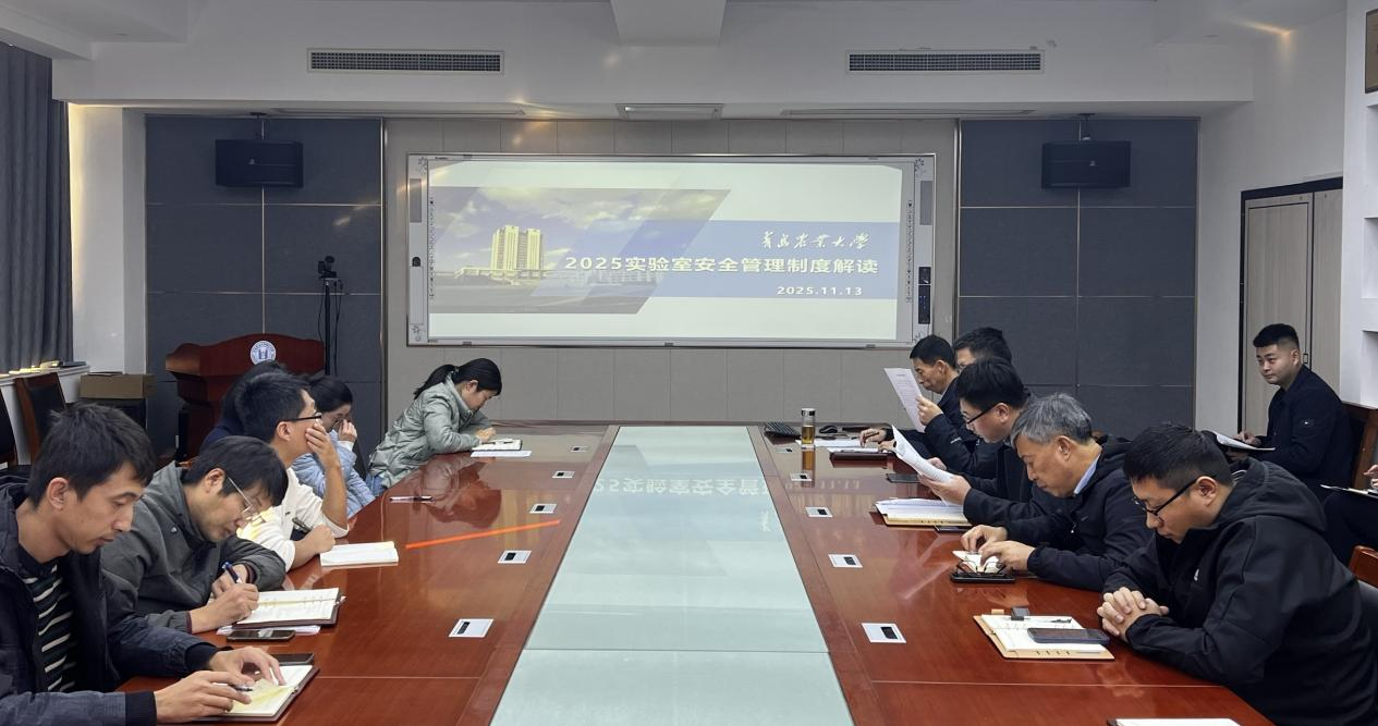 为认真落实校园安全治理工作,切实强化实验室安全管理,11月13日,我院于生物楼N306会议室组织开展2025年度实验室安全管理制度专题培训会。学院各科研团队骨干教师参加培训会,培训会由学院党委书记隋成竹主持。