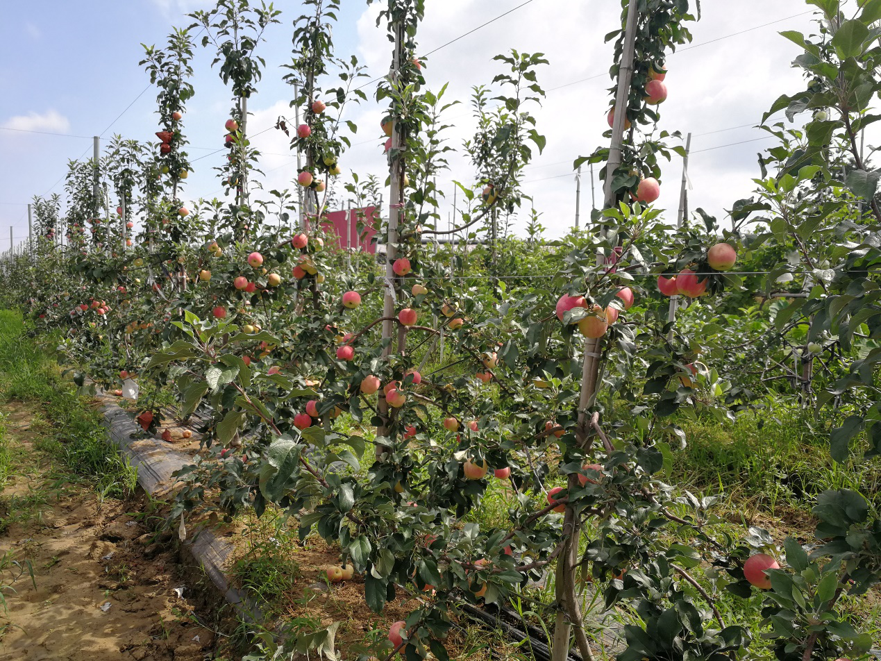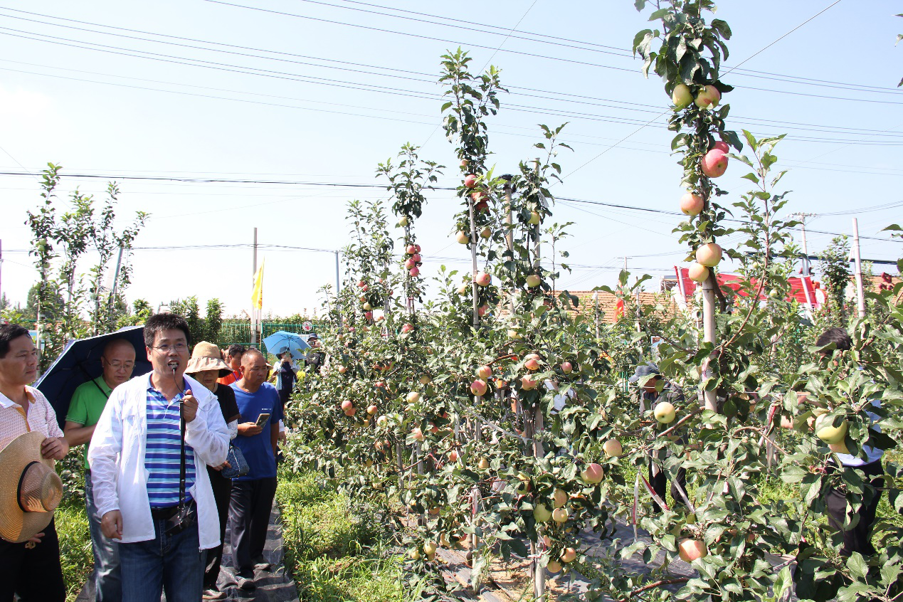 参会人员现场参观了平度市南村镇沙梁新村‘福早红2号’示范基地及其他苹果新品种试验园。在‘福早红2号’基地现场,国家苹果产业技术体系岗位科学家、山东省科技特派员、kaiyun登录中国入口登录kaiyun登录中国入口登录张玉刚教授和沙梁新村王恩忠书记,分别介绍了‘福早红2号’生长结果以及示范园建设情况,并详细解答了观摩人员的现场提问。
