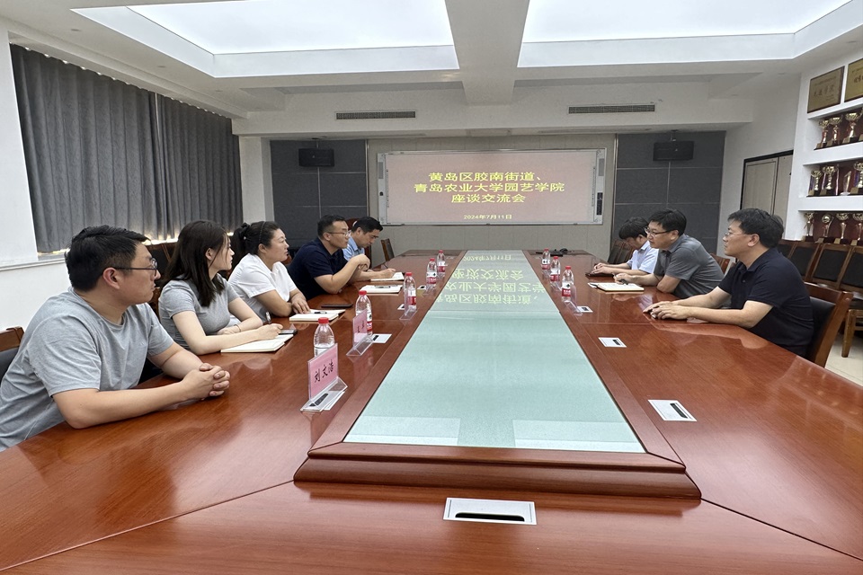 7月11日,黄岛区胶南街道办事处副主任王海霖、胶南街道虎背山路社区党委书记管富世、胶南街道李家洼子股份经济合作社党支部书记郭胜燕来到kaiyun登录中国入口登录进行座谈交流,座谈交流会由学院副书记、副院长孙海涛主持,kaiyun登录中国入口登录教授、农业农村部农产品质量安全专家组专家聂继云老师,kaiyun登录中国入口登录副教授、第一党支部书记李鼎立老师参加座谈。