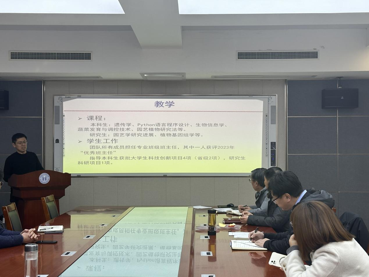 交流会上,园艺系、设施农业科学与工程系、茶学系系主任,果树学科、蔬菜学科、设施园艺学科、茶学学科负责人,结合工作职责汇报了各系、二级学科2023年度工作开展情况及2024年度工作计划。果实品质调控与质量安全研究团队、苹果遗传与育种团队、果树生物技术与种质创新团队、梨遗传改良与种质创新团队、茶叶品质调控团队、瓜类生物学团队、葱蒜生物学团队、茄果类蔬菜生物学团队、十字花科蔬菜遗传育种团队、园艺植物采后工程与技术团队、茶树育种团队负责人围绕人才培养、科学研究、社会服务、国际交流合作等方面汇报了团队2023年度工作开展情况及2024年度展望。