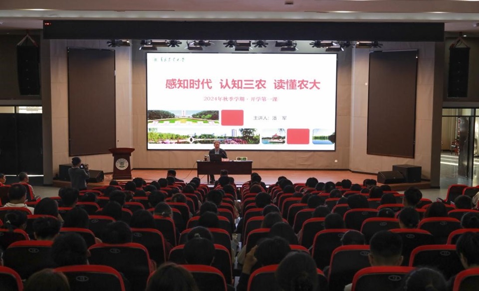 为帮助2024级本科新生适应大学生活,引导广大青年学生厚植知农爱农情怀,树立远大志向,10月11日,校党委书记潘军于平度校区博学楼报告厅为kaiyun登录中国入口登录和海洋科学与工程学院2024级全体本科新生讲授了以“感知时代 认知三农 读懂农大”为主题的秋季学期开学第一课。