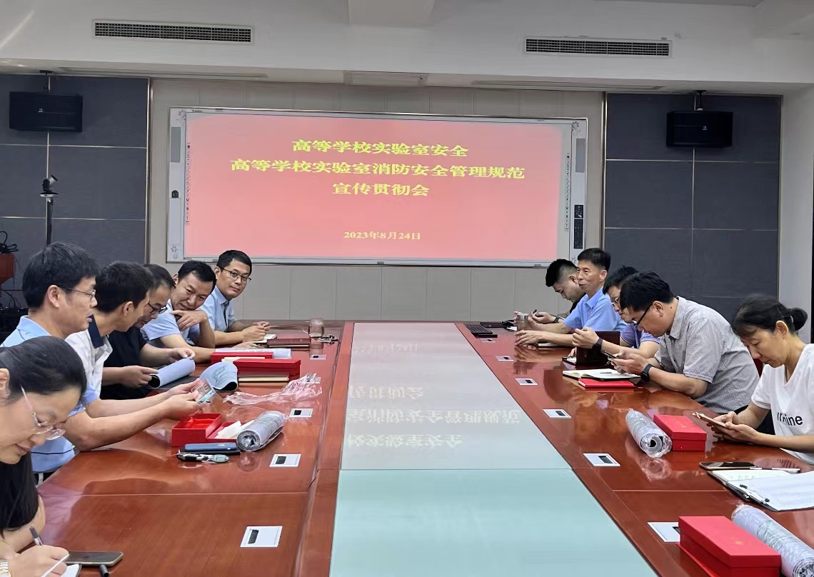 8月24日下午,我院在生物楼N306会议室组织召开《高等学校实验室消防安全管理规范》集中学习宣传贯彻会,会议由学院党委书记隋成竹主持,院长、党委副书记、副院长、实验中心主任以及实验室负责人、实验室安全管理人员等参加会议。会上,实验中心主任领学了《高等学校实验室消防安全管理规范》,重点解读了实验室消防安全管理的总体要求、消防安全责任、消防安全制度和管理、消防安全措施、灭火和应急疏散预案编制和演练、火灾事故处置与善后以及奖惩制度。隋成竹进一步强调了有效提升师生消防安全素质和安全隐患排查整改能力的重要性,要求各实验室负责人要及时发现问题解决问题,推动安全教育和贯彻落实工作走深走实。