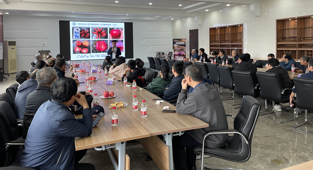 戴洪义教授和祝军教授分别向与会人员介绍了团队近年来在品种选育方面取得的科研成果以及‘福星’苹果的配套栽培管理技术。