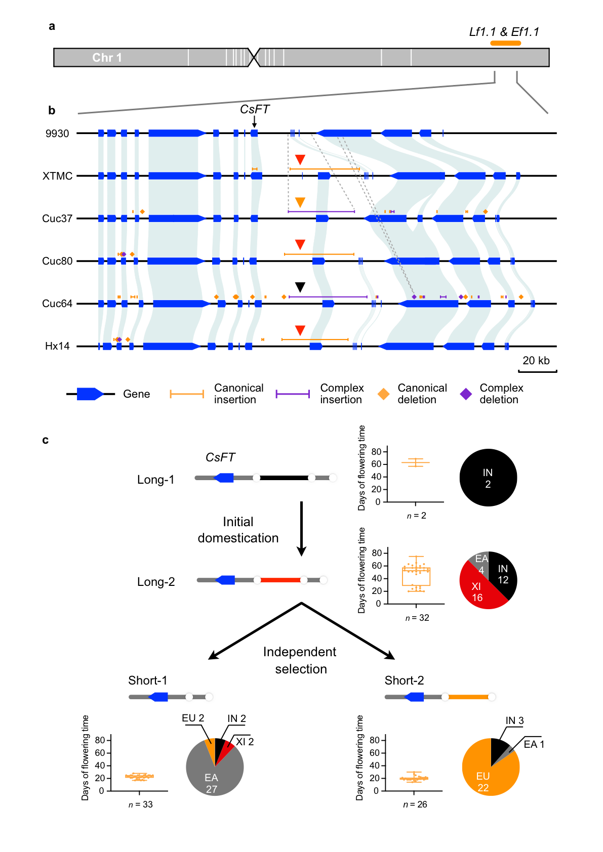 图4 黄瓜开花时间CsFT基因的驯化和育种选择