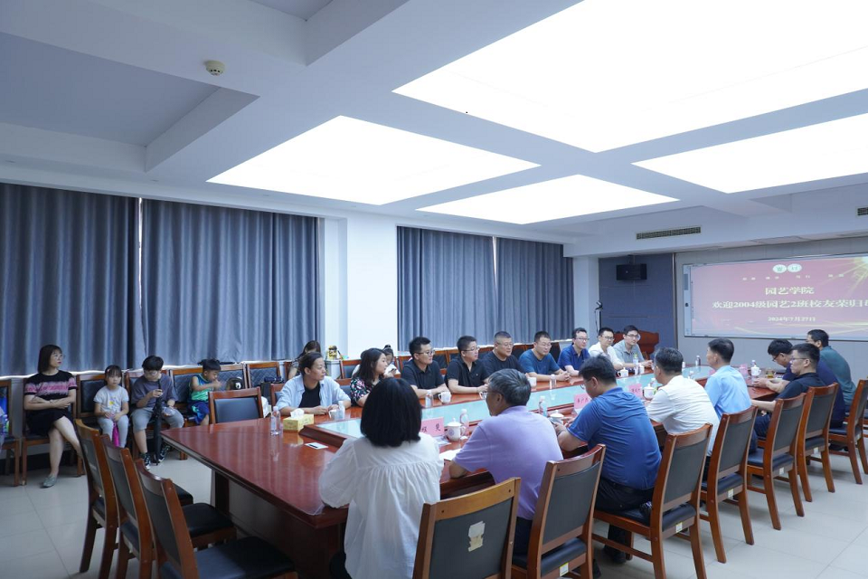 7月24日下午,kaiyun登录中国入口登录园艺专业2004级2班校友相聚母校,举行入校二十周年师生座谈交流活动,他们欢聚一堂,共叙母校情、师生情、同窗情。会议由学院党委书记隋成竹主持,食品科学与工程学院党委书记、kaiyun登录中国入口登录原团委副书记车广杰,继续教育学院院长、2004级园艺2班班主任潘军,kaiyun登录中国入口登录领导班子成员参加座谈。