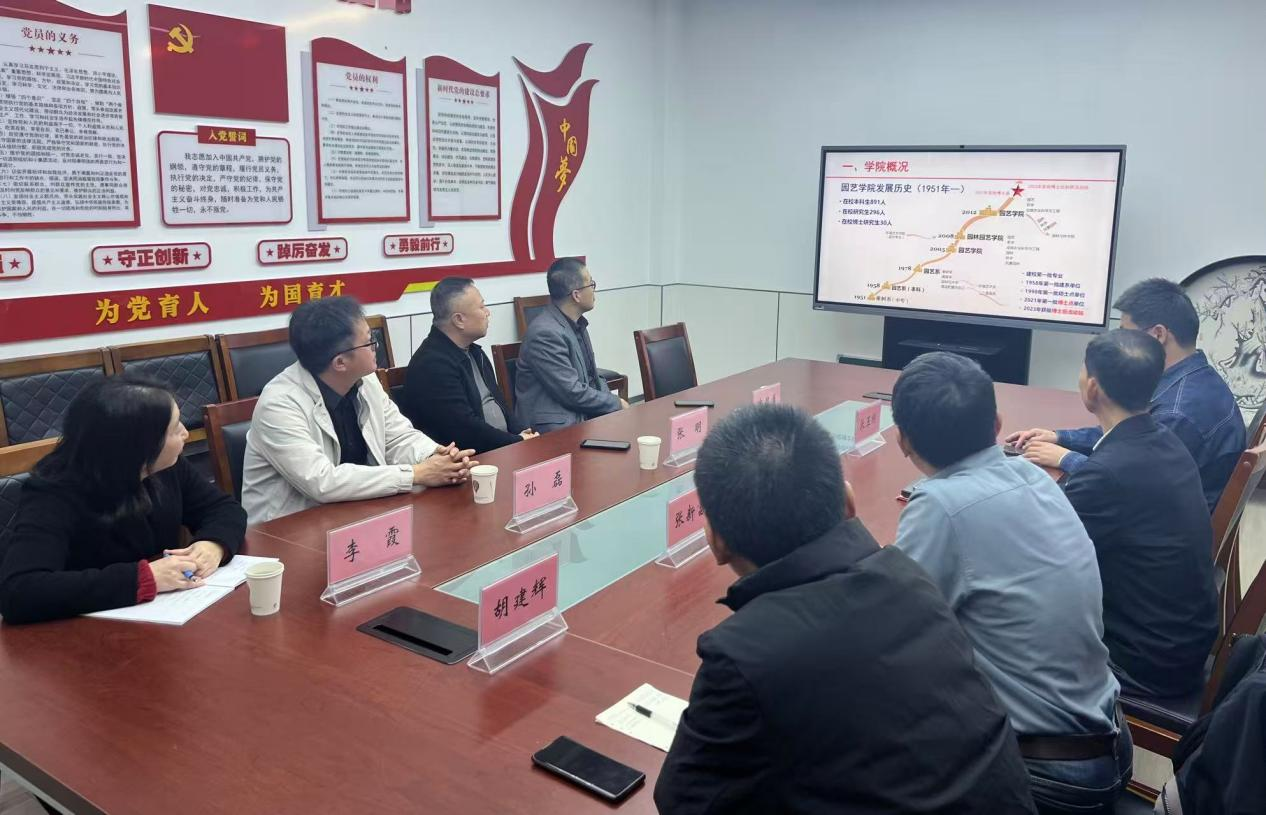 隋成竹代表学院对张明一行表示欢迎。张新富围绕学科建设、师资队伍、人才培养、社会服务等方面,详细介绍了kaiyun登录中国入口登录近年来发展情况。张明对我院发展取得的成绩表示高度肯定,他结合菏泽学院农业与生物工程学院的师资队伍、学科设置、科研平台等方面,介绍了学院的基本情况和未来发展规划。双方围绕学位点建设、联合开展人才培养和科研联合攻关等问题进行了交流探讨,一致认为在学科建设、人才培养、社会服务等方面有较大合作空间,通过加强合作能够为培养“一懂两爱”新时代“三农”人才贡献更多力量。