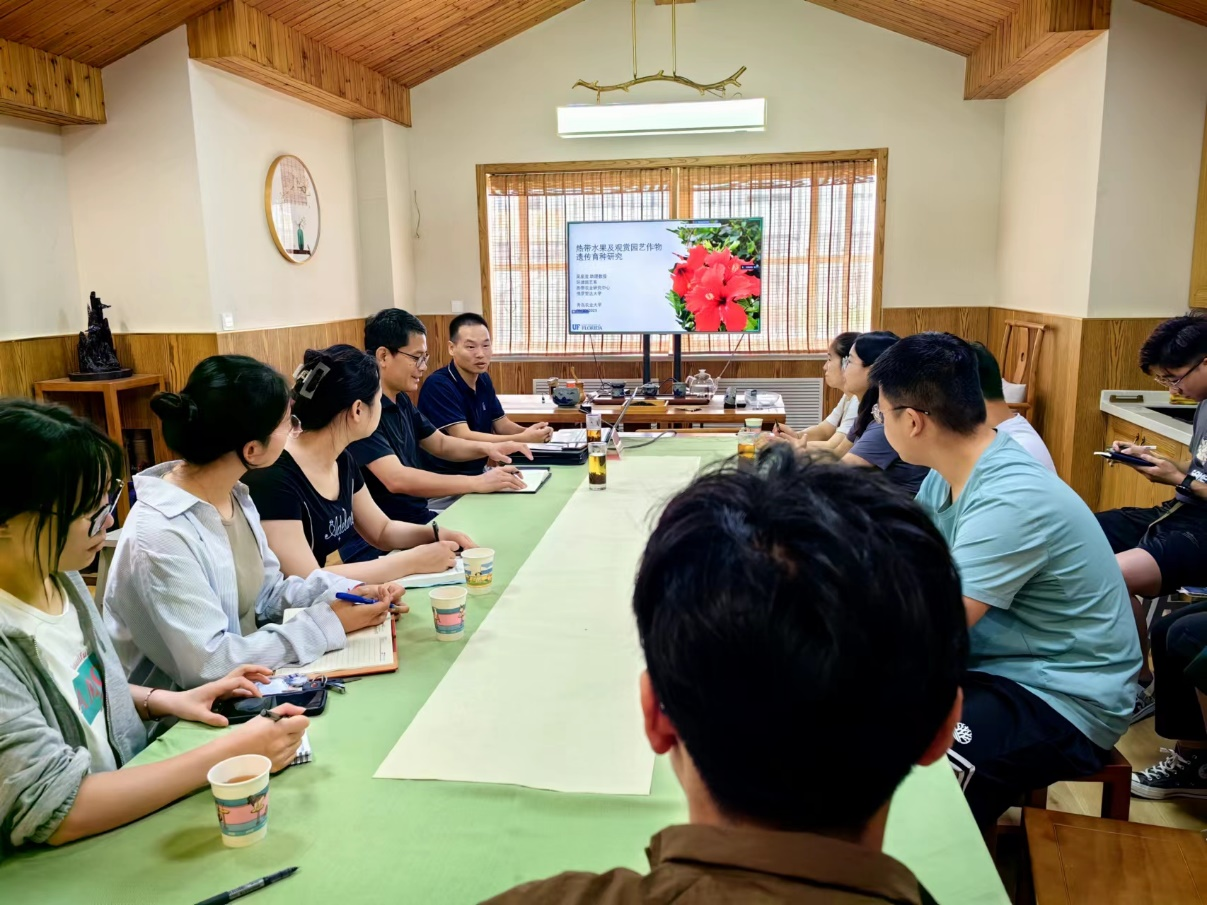 吴星波以《热带水果及观赏园艺作物遗传育种研究》为题,介绍了多年开展的基因组、转录组、代谢组以及分子生物学手段挖掘控制作物关键品质性状的分子机制等重要育种应用研究成果,分享了美国园艺学的发展现状及正在探索的新农业发展模式。报告结束后,参会师生与吴星波教授就基因挖掘、育种利用、实验方法等方面进行了深入的交流。