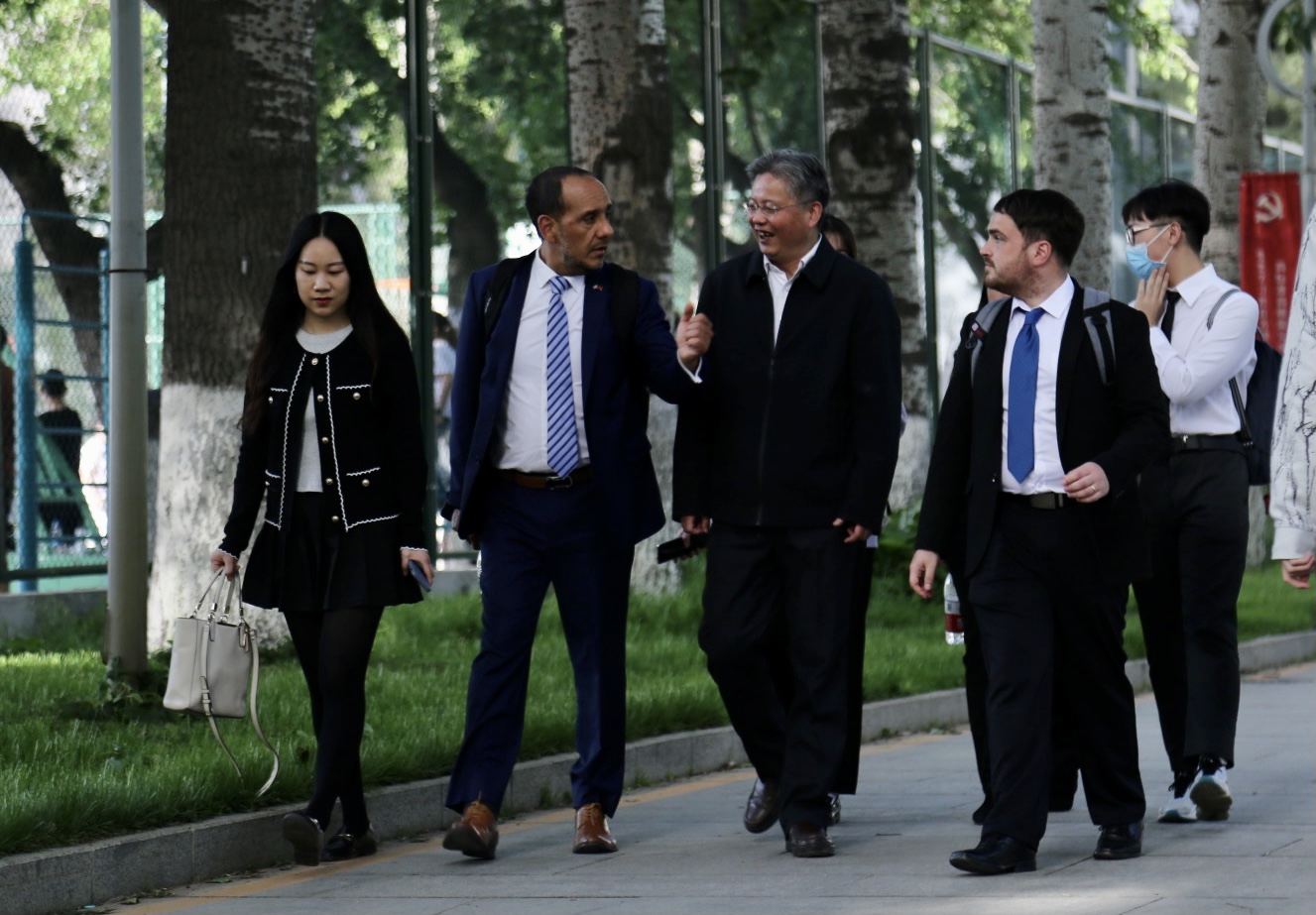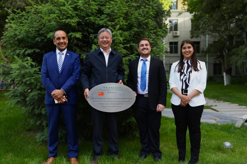 讲座结束后,在365best体育亚洲官网院长常福良的陪同下,乌拉圭驻华使馆领事塞尔西奥·德亚巴列、潘慧敏老师、张哲海老师一起参观了北外校园的“中国—乌拉圭友谊树”。