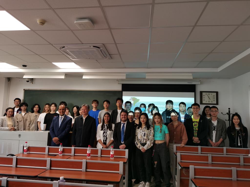 潘慧敏、张哲海两位老师首先介绍了乌拉圭的地理条件和战略位置,由此引入了乌拉圭的民族独立史,而后讲述了在此背景下民族独立解放领导者阿蒂加斯的生平,通过对其参军历程、领导革命、战败流亡等阶段的讲述,全景式描述了阿蒂加斯的生平事迹。最后,两位老师分享了自身的教育经历与体会,介绍了阿蒂加斯对后世的教育价值,对阿蒂加斯进行了深入解读和评价。讲座反响热烈,获得了师生的一致好评。在提问环节,潘慧敏、张哲海就历史人物阿蒂加斯对当今乌拉圭的影响、阿蒂加斯的历史解读、阿蒂加斯对拉丁美洲的影响等问题进行了解答。