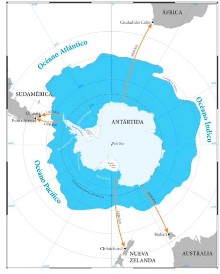 当今国际公认的南极门户主要有五处:智利的蓬塔阿雷纳斯、阿根廷的乌兹怀亚、新西兰的基督城、澳大利亚的霍巴特以及南非的开普敦(见图1)。其中,蓬塔阿雷纳斯是重要的航空门户,而乌斯怀亚是最核心的海上门户,集中了海上客流量的85%至90%。